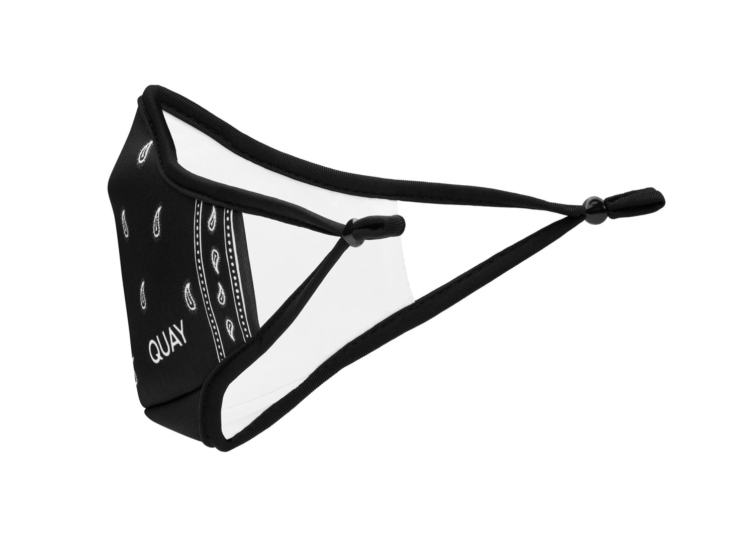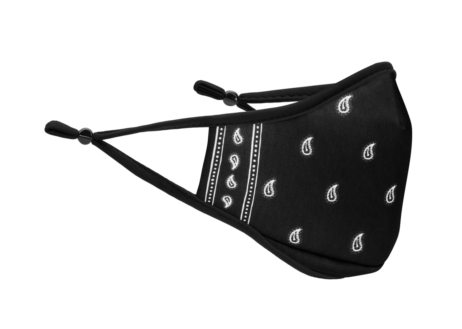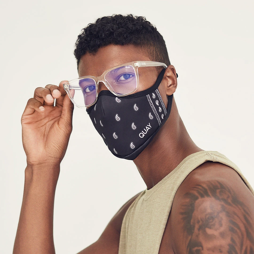 - Black + white paisley-bandana printed mask
