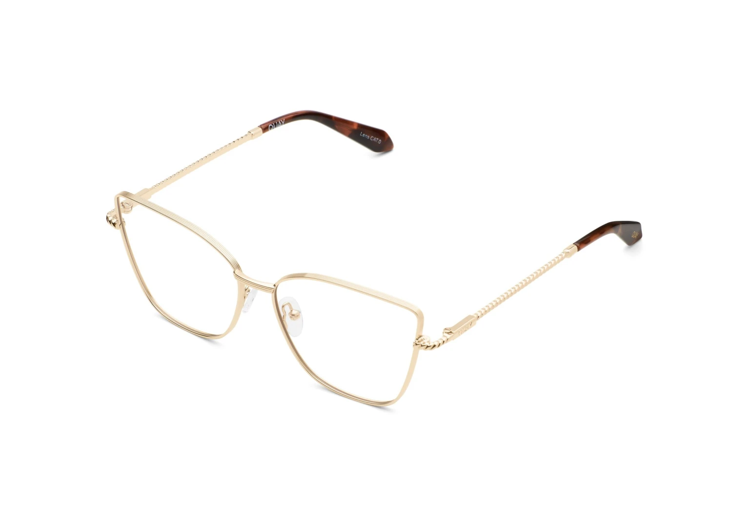 Go all in with SEND IT RX. These cat eye prescription glasses feature a sleek metal frame with rope details at the temple. Plus, adjustable nose pads for those with a low nose bridge and higher cheekbones.Â